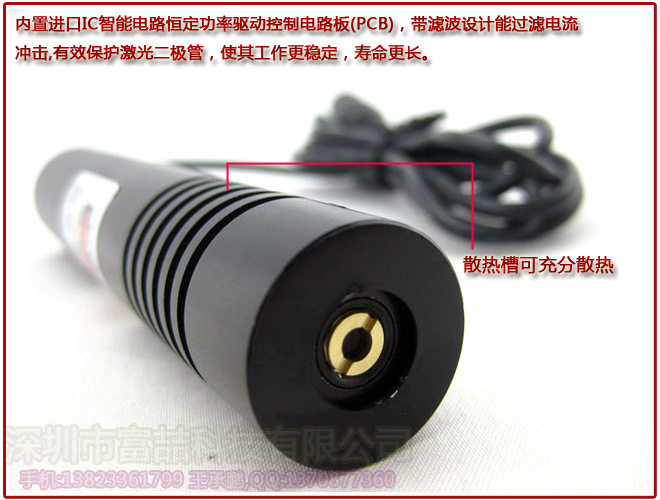 6.尺寸:采用加大尺寸(22*110mm)的金属外壳(带散热槽),更有利于对激光二极管的散热,使其工作更稳定,寿命比普通产品增长2000H以上。内部填充了导热硅胶和AB胶,既保证了充分散热,又能防震抗摔。
