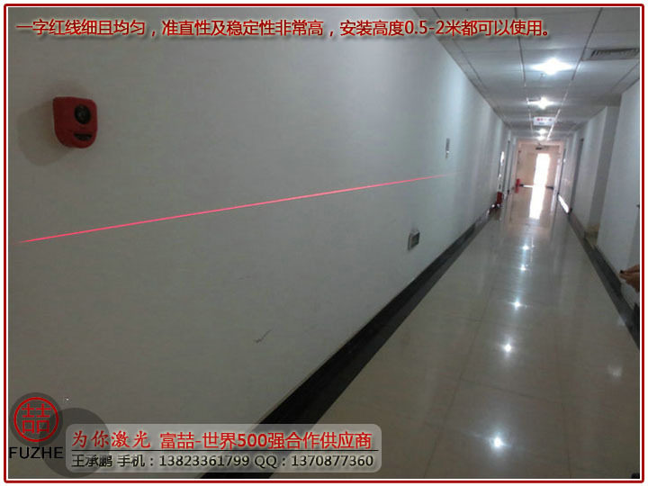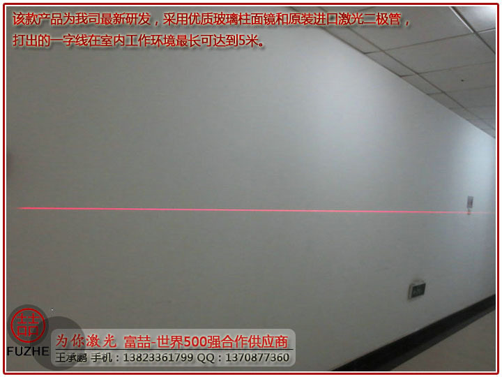 该款产品为我司最新研发,采用优质玻璃柱面镜和原装进口激光二极管,打出的一字线在室内工作环境最长可达到5米,红线细且均匀,准直性及稳定性非常高,安装高度0.5-2米都可以使用。